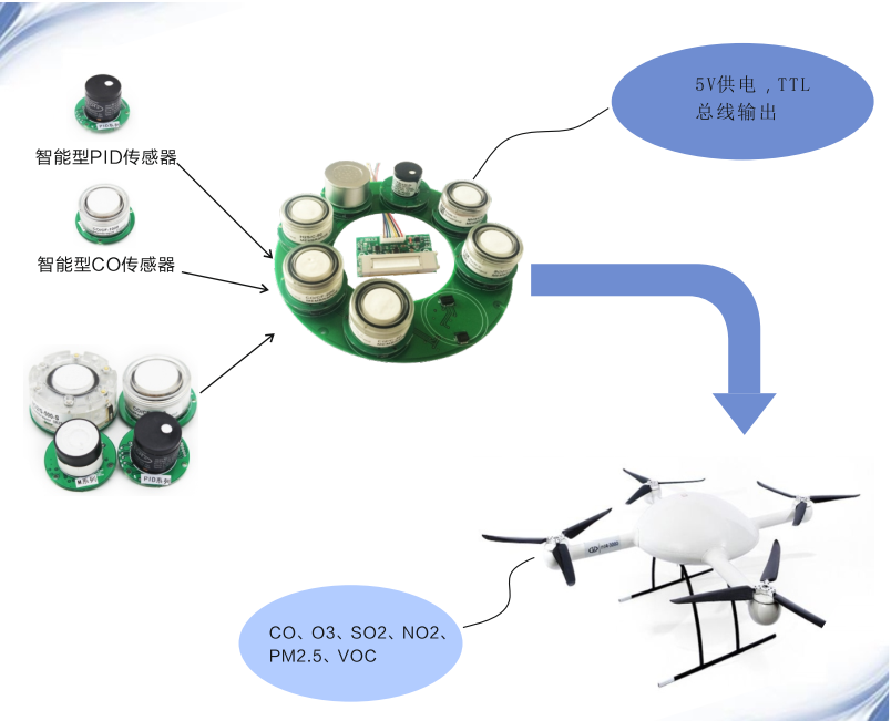 無人機(jī)載智能傳感器在監(jiān)測大氣環(huán)境作業(yè)中效率高、機(jī)動靈活、使用方便、續(xù)航時間長、受環(huán)境影響小和精度高等優(yōu)點,可以承擔(dān)高風(fēng)險的飛行任務(wù),為大氣環(huán)境監(jiān)測提供了一種新的選擇。