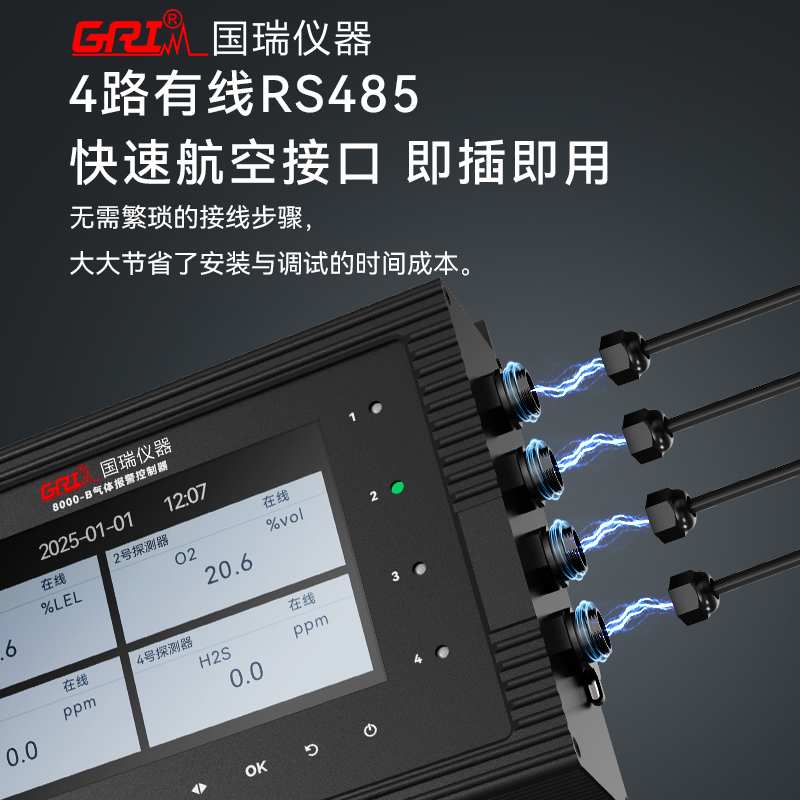 GRI-8000-M壁掛式氣體報警主機,是用于測量并持續(xù)監(jiān)控存在于環(huán)境中的氣體;可實時同時監(jiān)測8路氣體狀態(tài),并通過大屏幕LCD實時顯示測量狀態(tài),對異常監(jiān)測狀態(tài),快速精確反應(yīng)報警,除聲音報警,可視報警外,還可控制外接繼電器,方便控制外圍預(yù)警系統(tǒng)。同時,具有時間 、日期以及系統(tǒng)運行時間顯示 。系統(tǒng)具有RS485數(shù)字信號連接8路變送器對環(huán)境氣體進(jìn)行實時監(jiān)控。GRI-8000-M壁掛式氣體報 警主機,具有8路主機標(biāo)配報警,繼電器輸出,同時配備聲音報警和LED顯示報警。 多種報警控制方式,以便操作人員對報警情況進(jìn)行快速高效處理。GRI-8000-M可廣泛應(yīng)用于工廠、倉庫、礦井等各種現(xiàn)場環(huán)境的在線監(jiān)測。
