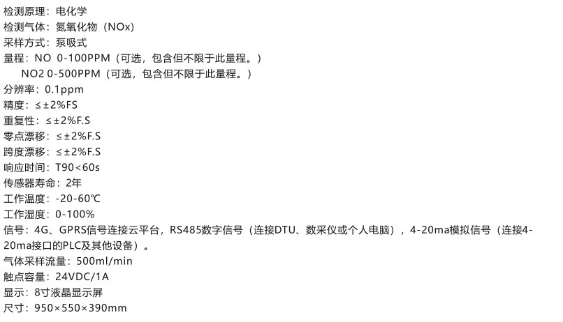 氮氧化物在線式分析儀可全天候24小時實時監(jiān)測鍋爐、煙窗、低氨燃燒器等相關設備的氮氧化物排放監(jiān)測,采用進口電化學傳感器精確檢測分析氮氧化物成份。分析儀采用多種方式傳輸RS485、GPRS,4G模塊可直接上傳云平臺,并帶模擬信號4-20mA輸出。選用大尺寸液晶顯示屏,儀器自帶大容量存儲功能。