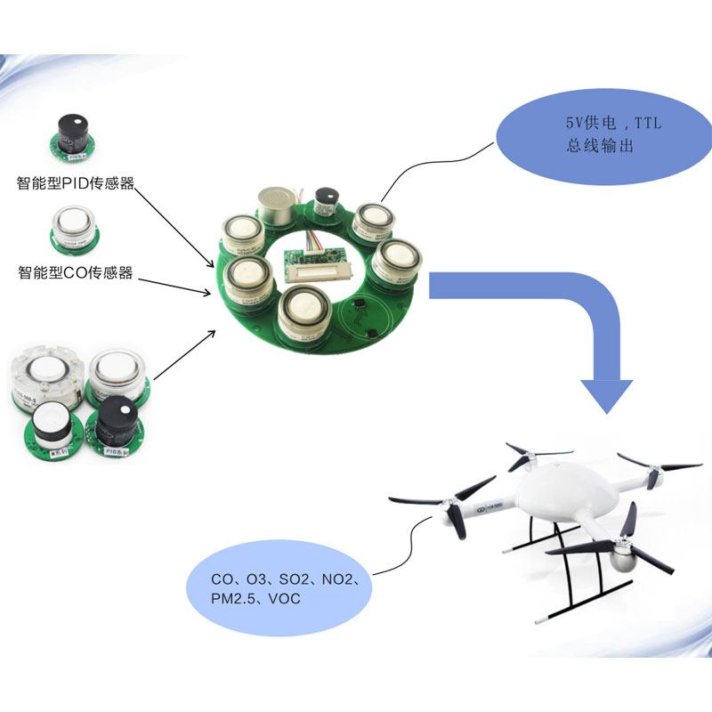 無人機(jī)載智能傳感器在監(jiān)測大氣環(huán)境作業(yè)中效率高、機(jī)動靈活、使用方便、續(xù)航時間長、受環(huán)境影響小和精度高等優(yōu)點,可以承擔(dān)高風(fēng)險的飛行任務(wù),為大氣環(huán)境監(jiān)測提供了一種新的選擇。